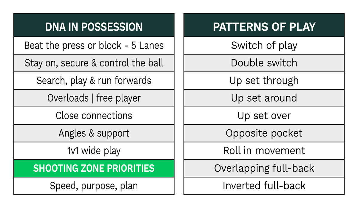 These are my in-possession principles and patterns of play which I would share and use as key reference points with staff and players.