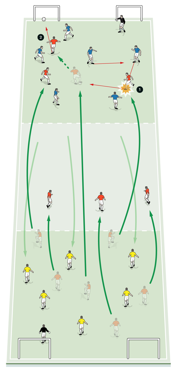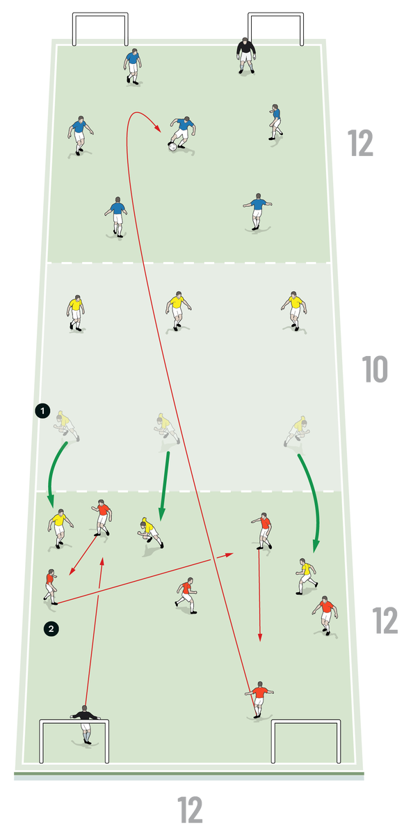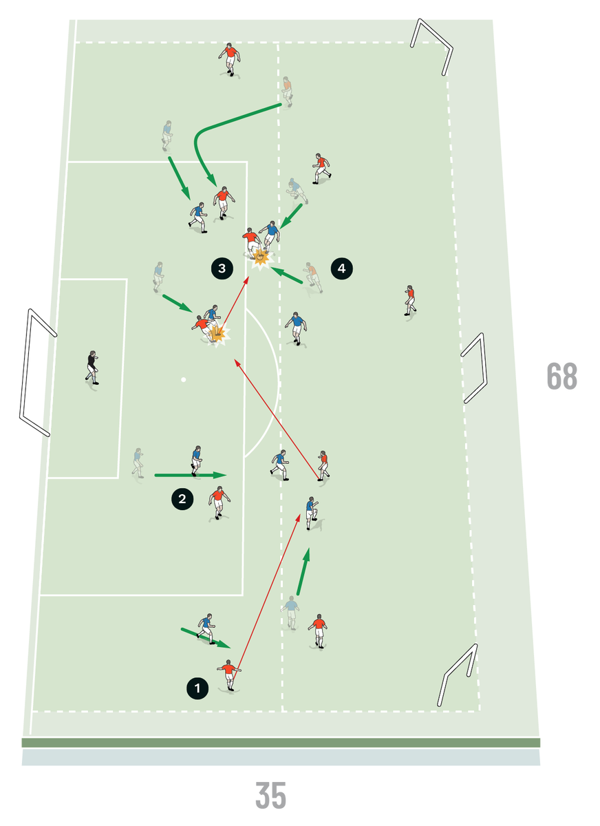 This is a session used to develop the team to suffocate the opponent in the final third.