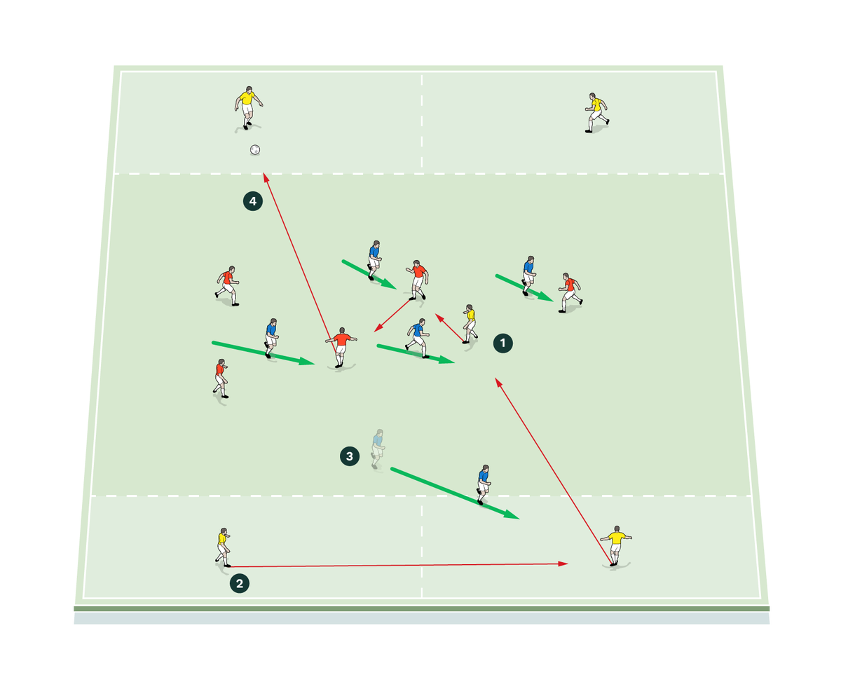 It is these pass-and-move actions that lead to what some call players ‘bunching together’ on one side of the pitch.