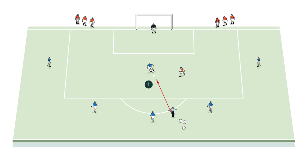 This session is about the ability to get shots from inside the penalty box under intense pressure, making it as specific to a matchday situation as possible.