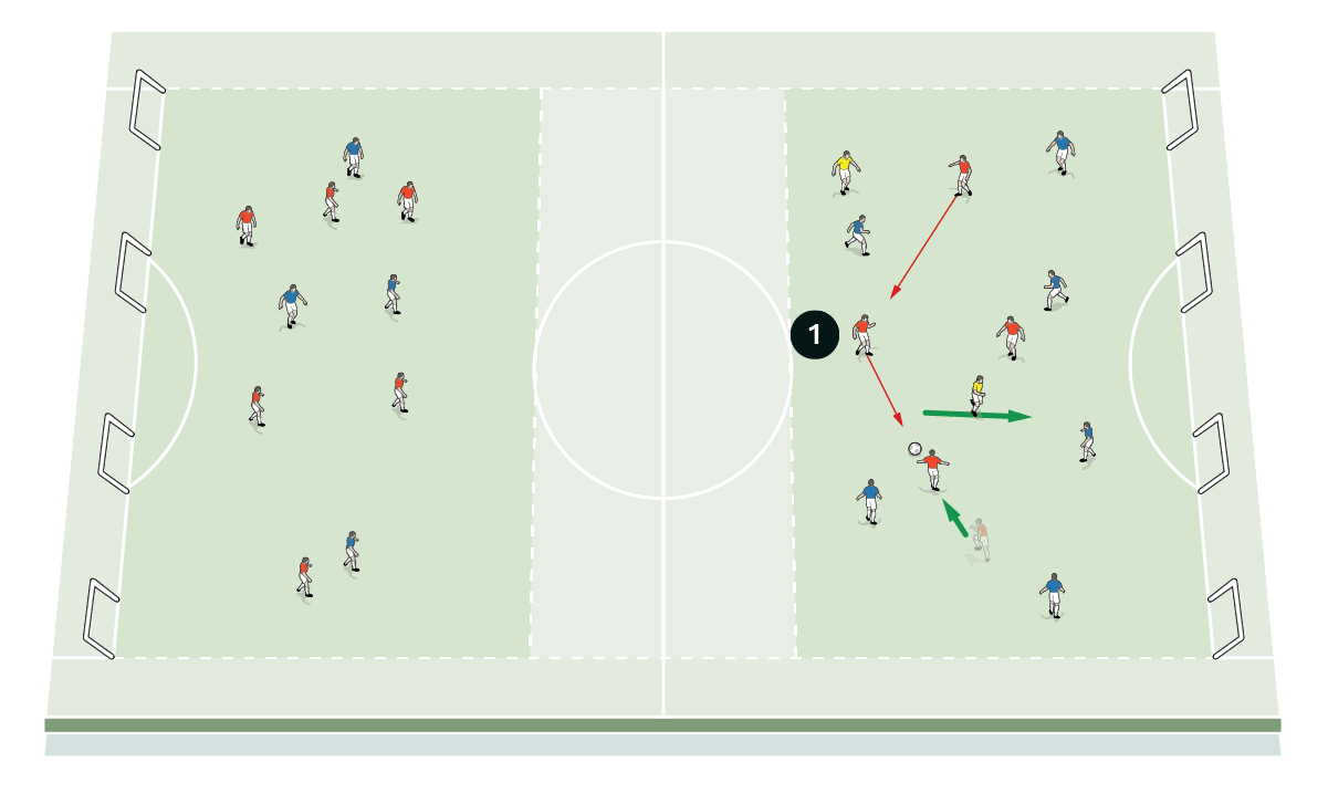 This session is about the creation of transition both in and out of possession for individuals, units and both teams.